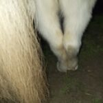 Minishetland Pony, 95 cm, 150 kg, 22 years old, suffers from EMS (Equine Metabolic Syndrome) and is at risk of laminitis (therefore cannot eat fresh grass). She has teeth that are too large for her small jaw and developed asthma in the summer of 2022.